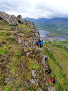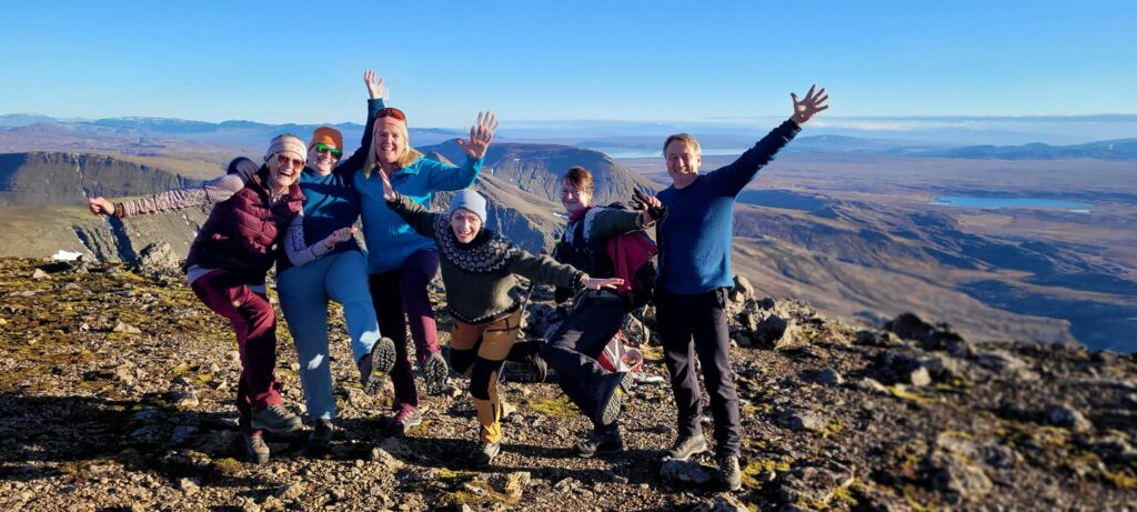 Toppfarar að ganga á Réttarháls fyrir þremur árum, Margrét er lengst til vinstri.