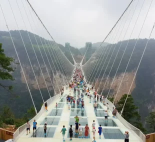 Glerbrúin í Zhangjiajie. Það er ekki fyrir hugdeiga að ganga þarna yfir.