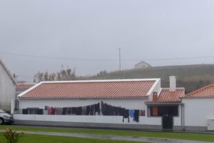 Þetta var einn mesti rigningardagurinn á eyjunum. Samt voru tvær bjartsýnismanneskjur í Horta – ég, sem fór í langa gönguferð, og svo var einhver sem hafði hengt út stórþvott.