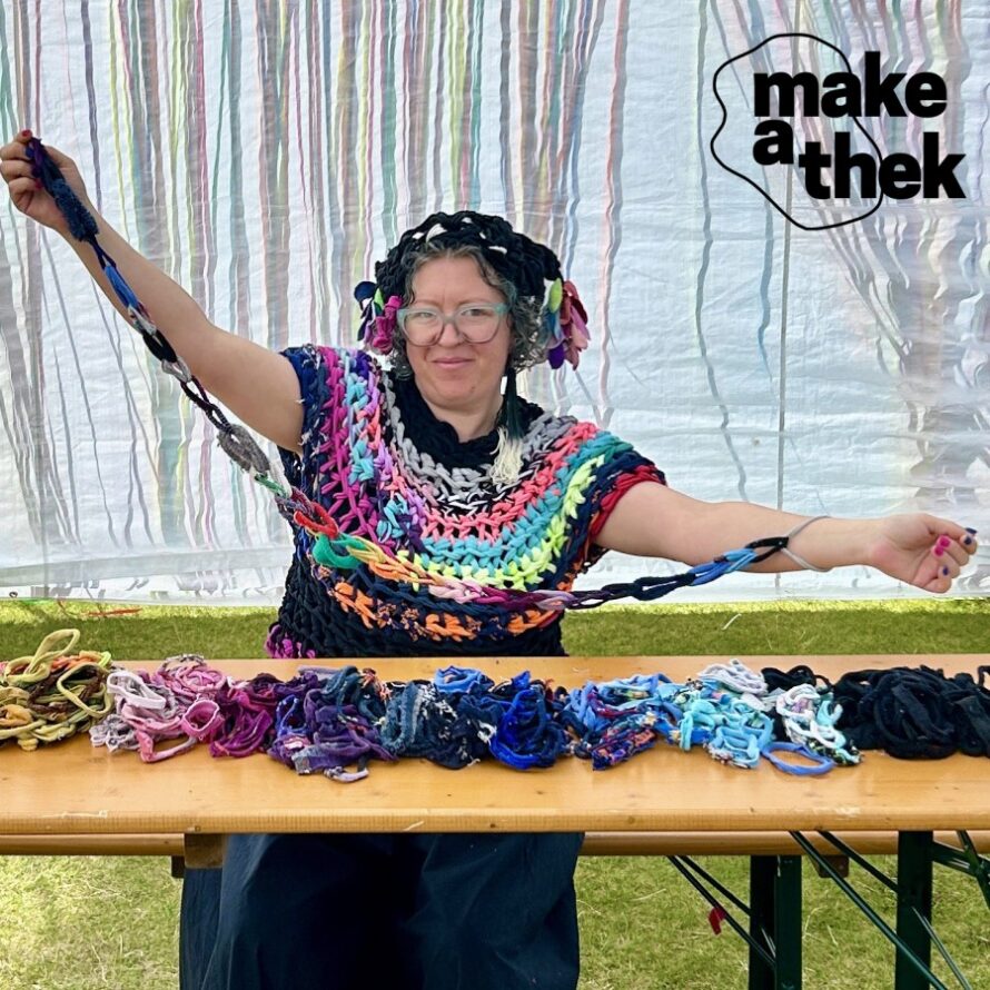 Smiðjan er haldin undir merkjum „make-a-thek“, alþjóðlegs verkefnis sem Borgarbókasafnið Gerðubergi er þátttakandi í til næstu þriggja ára. Markmið verkefnisins er að búa til vettvang fyrir skapandi og framsækna neytendur (prosumers) til að læra nýjar aðferðir í handavinnu, glæða gamlar flíkur nýju lífi og deila þekkingu. Verkefnið er styrkt af Evrópusambandinu.